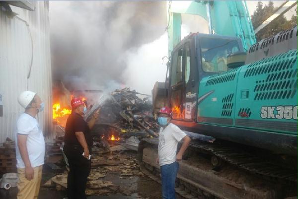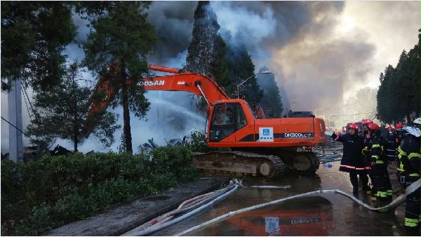 项目挖掘机深入火灾最前线不断进行隔壁厂房阻断,为消防人员开路,有效制止了火势蔓延。因燃烧大量有机物质,现场产生大量有毒有害气体,挖掘机司机在低氧有毒情况下仍继续向前开路,为确保人员安全,每过10分钟就对司机进行喊话,每半小时就换人操作,经过12个小时的奋战,圆满完成了救援任务。到凌晨三点半我项目机械和人员安全返回,圆满完成任务。